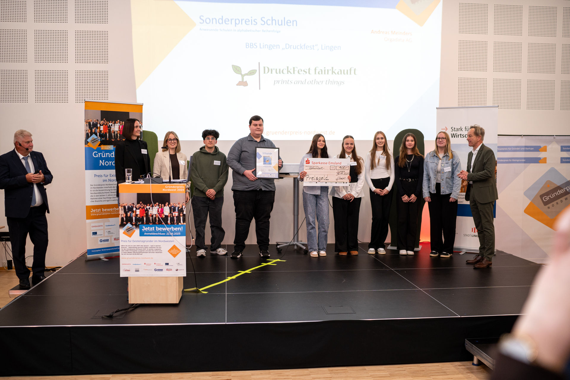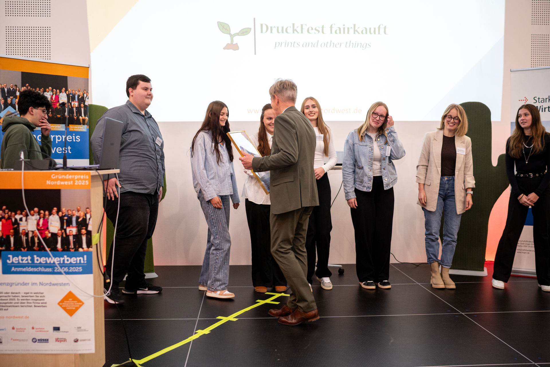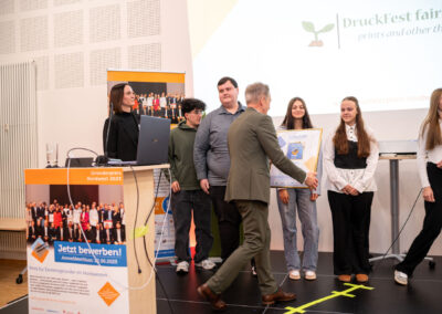 Der Schulpreis ging an „Druckfest“, das die Jury mit Professionalität, Kreativität und einem klaren Geschäftsansatz überzeugte.