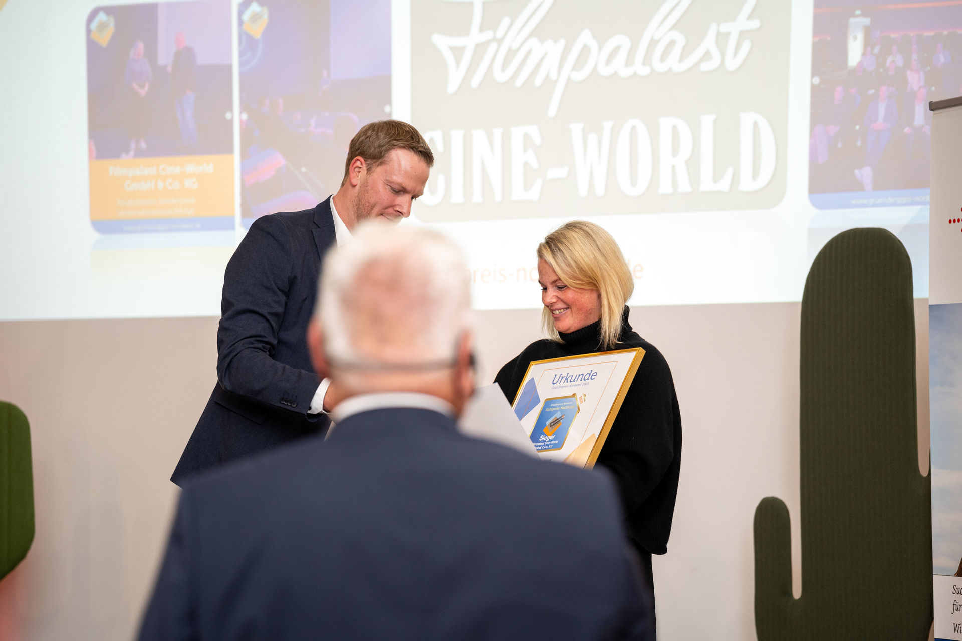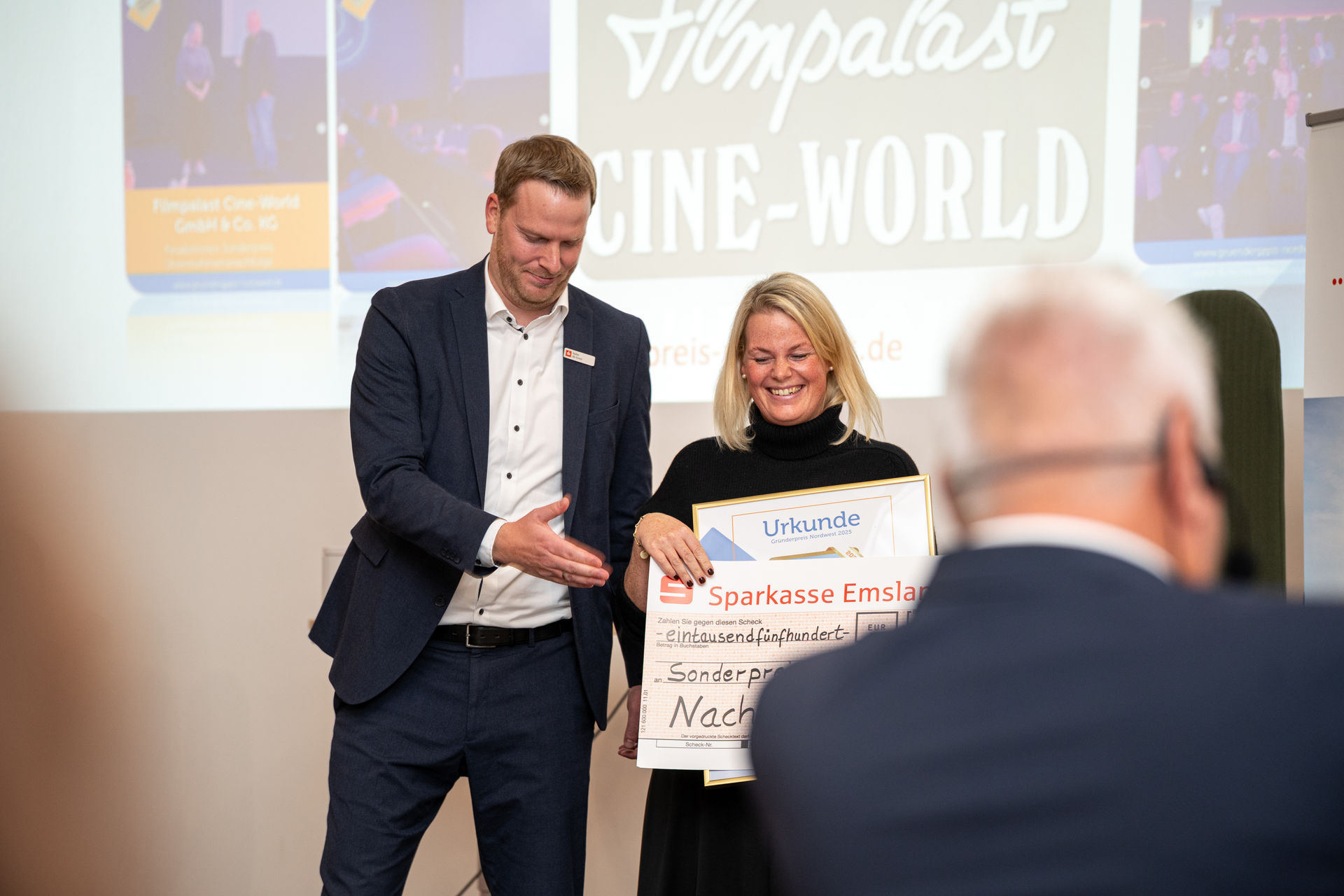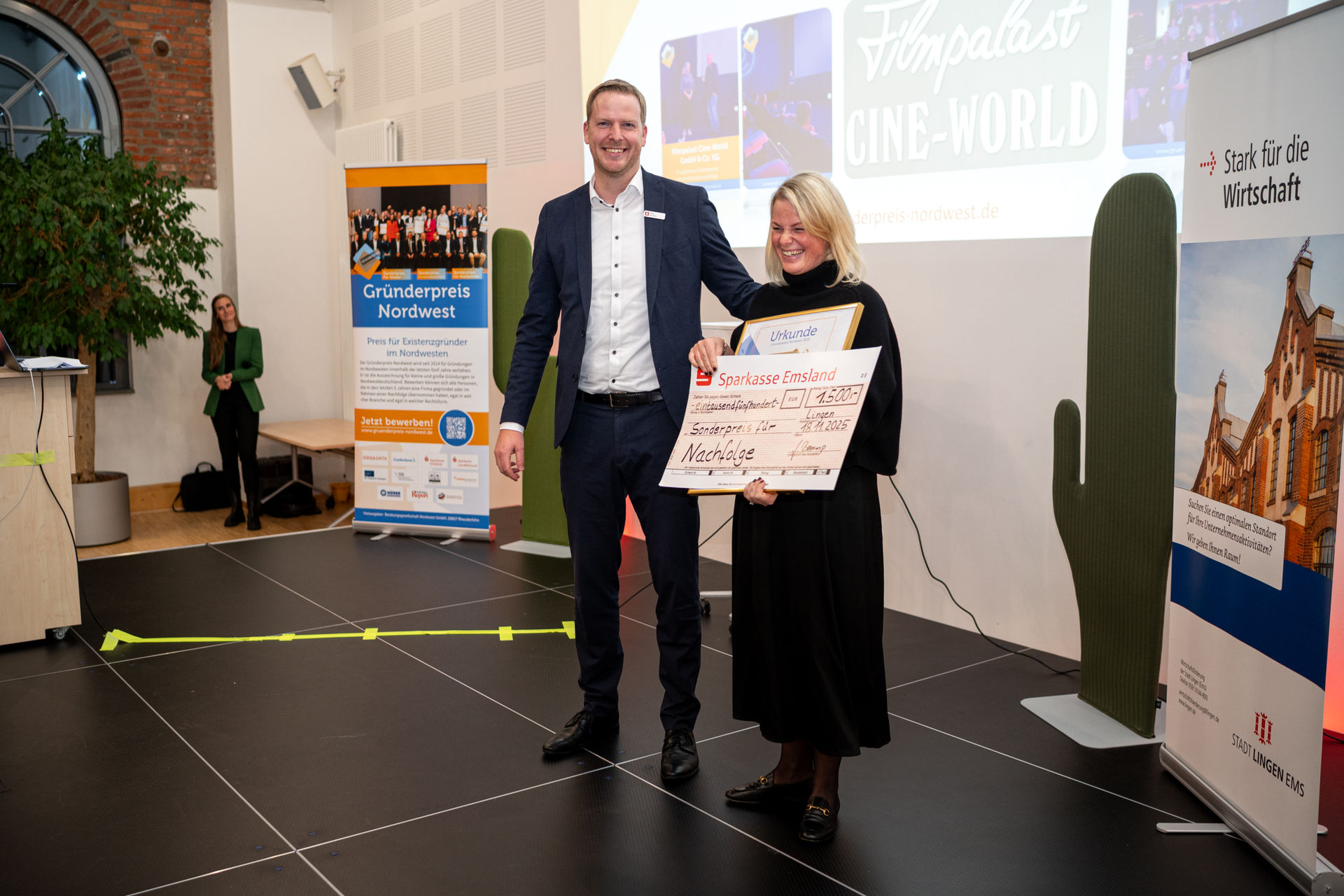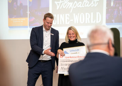 Filmpalast Cineworld GmbH & Co. KG aus Lingen — ein regionaler Kulturbetrieb, der die Jury mit seinem nachhaltigen Nachfolgekonzept überzeugte, erhielt den Sonderpreis für Unternehmensnachfolge und beweist, dass es sich lohnt, eine Nachfolge anzutreten.