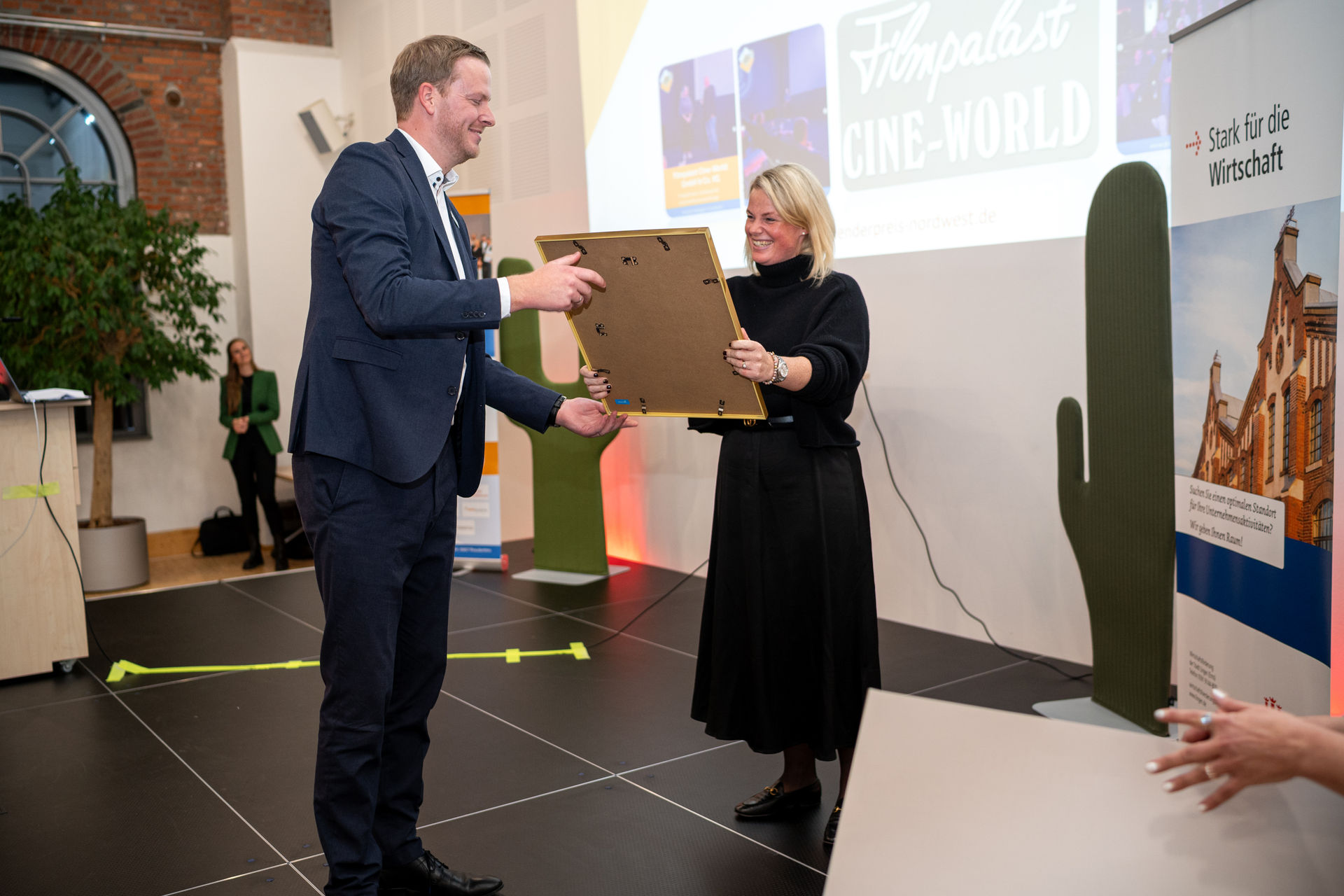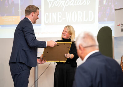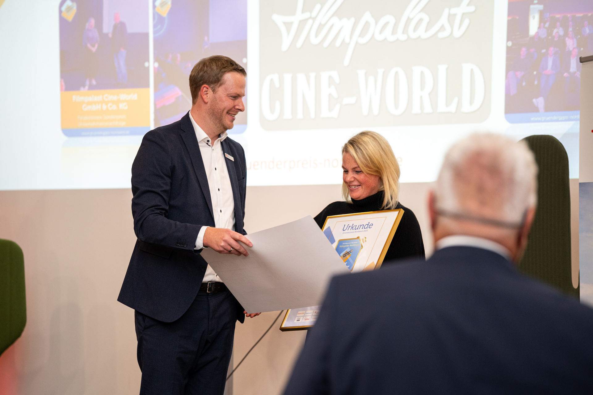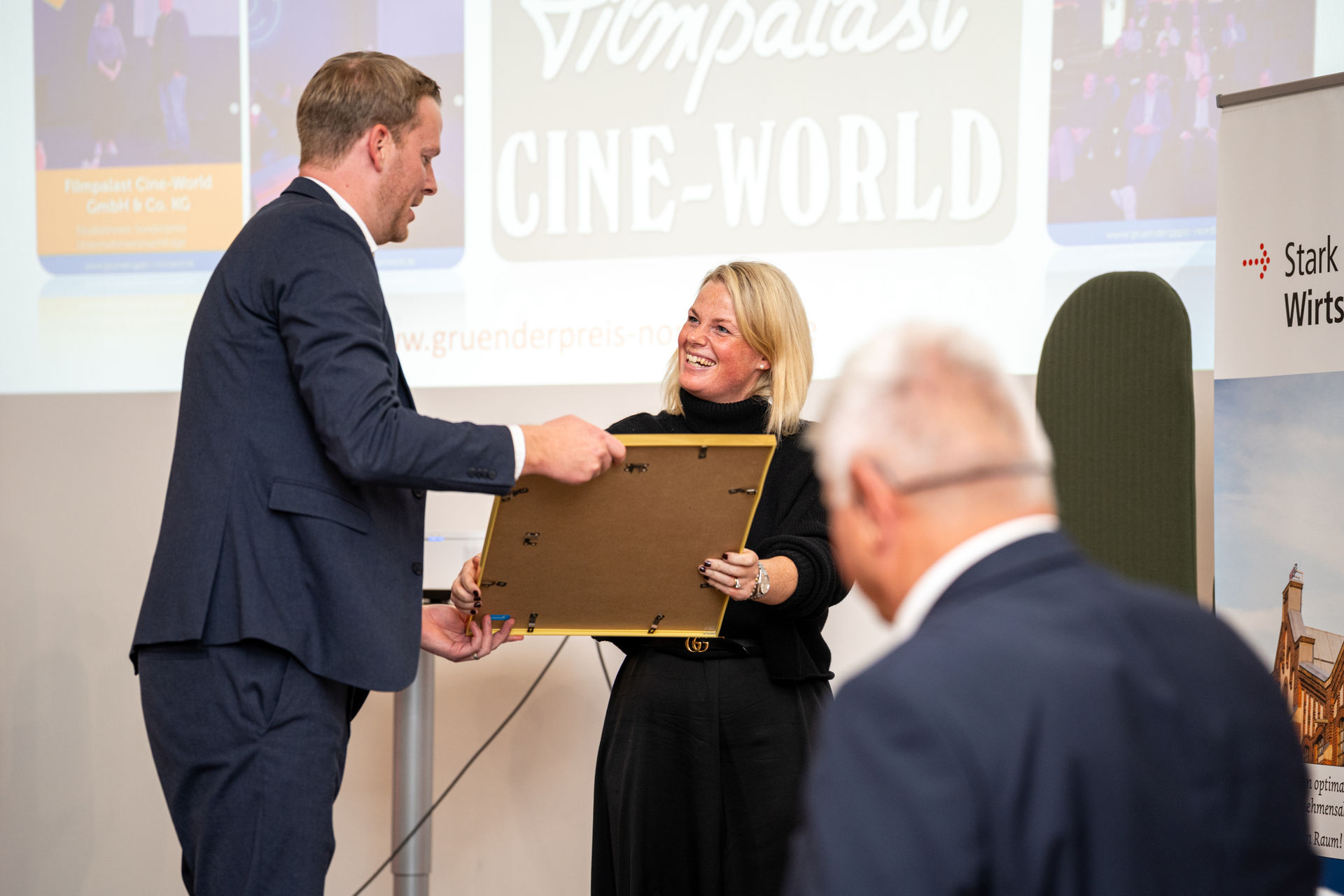 Filmpalast Cineworld GmbH & Co. KG aus Lingen — ein regionaler Kulturbetrieb, der die Jury mit seinem nachhaltigen Nachfolgekonzept überzeugte, erhielt den Sonderpreis für Unternehmensnachfolge und beweist, dass es sich lohnt, eine Nachfolge anzutreten.